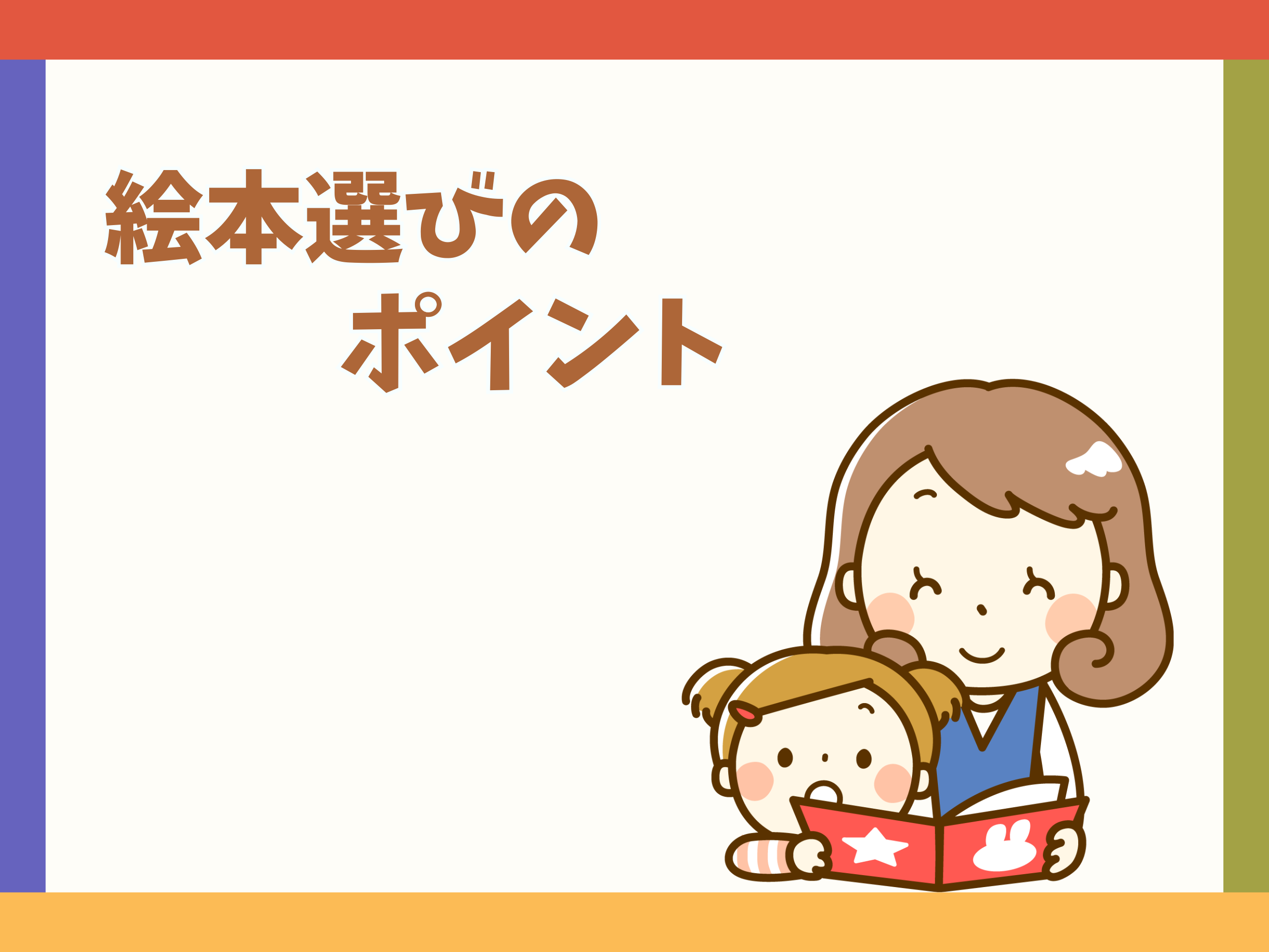 どんな絵本がいいのか悩んだら、このポイントを押さえて選んでみてください。